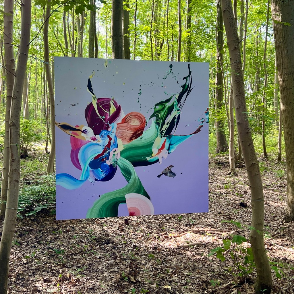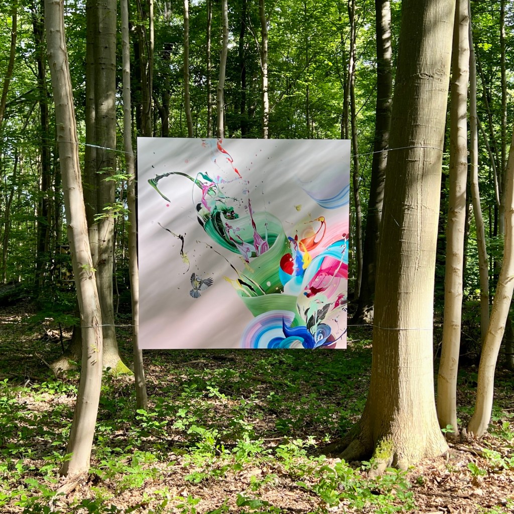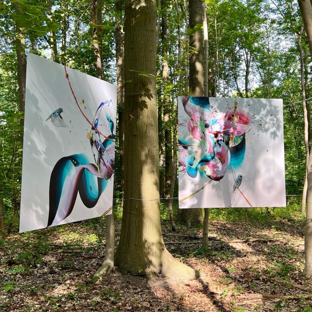 These 10 large scale artworks have all been part of the forest exhibition ‘Hiding in Nature’ where they were hanging in the forest of Frederiksdal castle from 16th aug – 14th sep 2025.