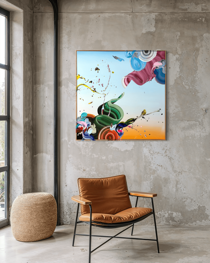 Acrylic on canvas, solid oak frame